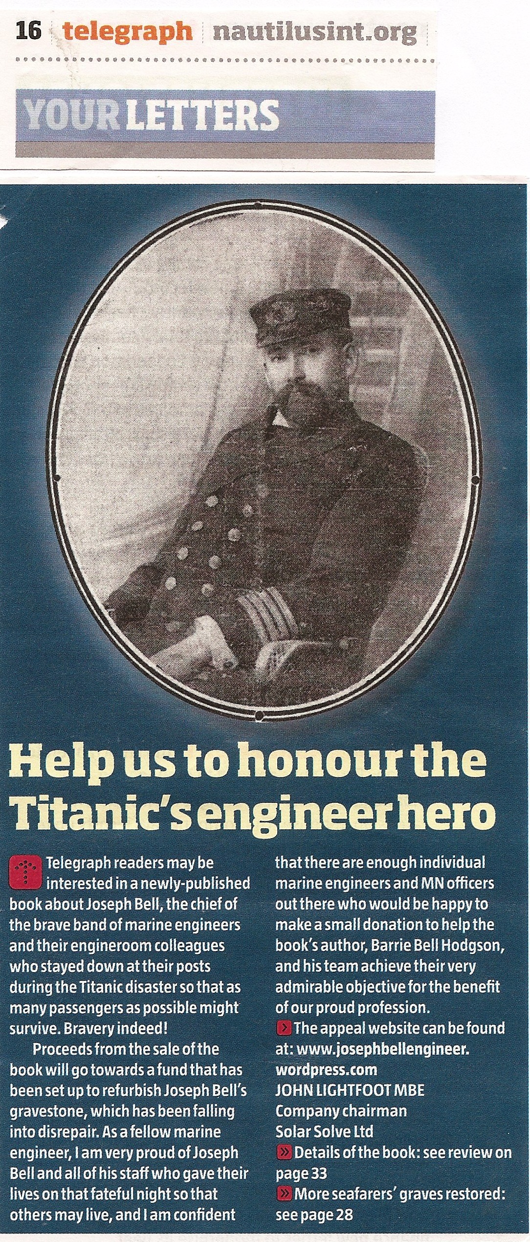 For those who may not have seen them, here are a selection News Reviews & Notices that have appeared for the new biography of Joseph Bell, Tarn to Titanic: Life & Times of Joseph Bell Chief