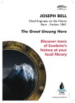 March 29, 2014The success of the fund raising paperback biography of Joseph Bell titled ‘Tarn to Titanic: Life & Times of Joseph Bell Chief Engineer’ in Autumn 2013, has persuaded us to make the biography accessible now as a PDF [Portable Document Format] from this website for, in particular, English speaking individuals from around the world who regularly visit this site and would otherwise have no access to the title. In receiving the biography with a donation to the ‘Joseph Bell Memorial Appeal,’ it will be helping with the conservation of his only memorial situated in Farlam, his birthplace, in Cumbria.