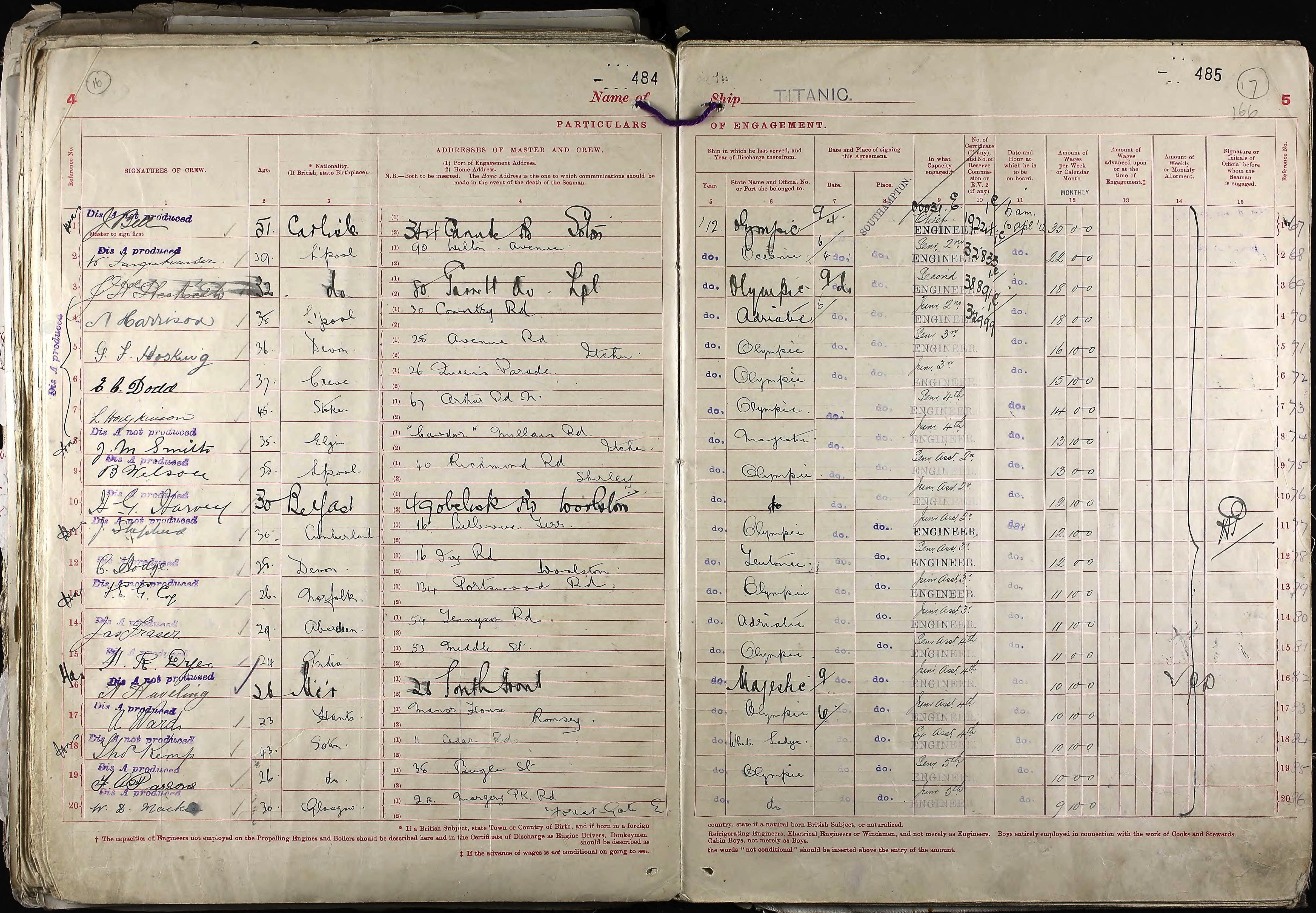 ‘Particulars of Engagement Titanic 1912’ Joseph Bell
