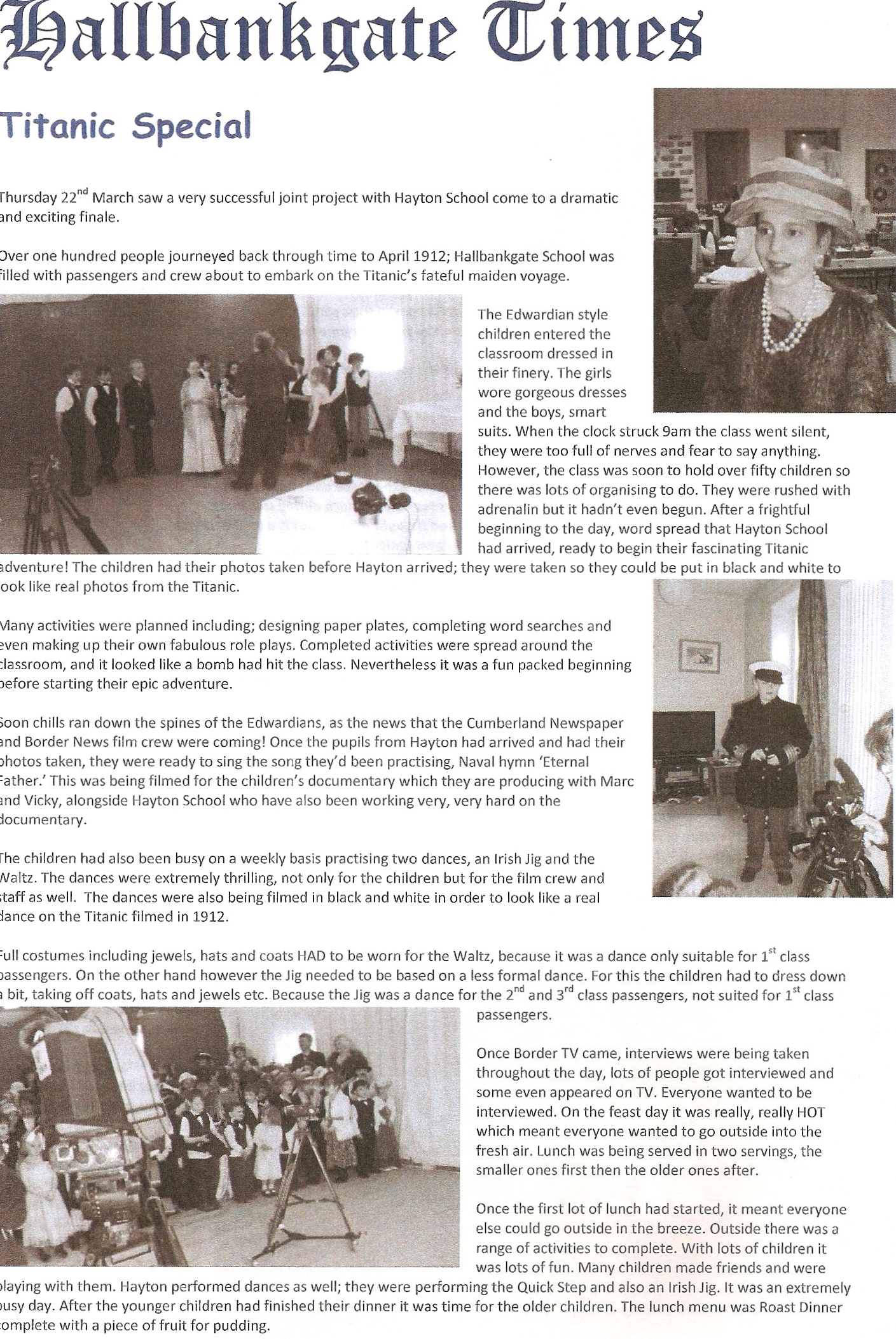 ‘Hallbankgate Times’ An epic Titanic project by staff & and children